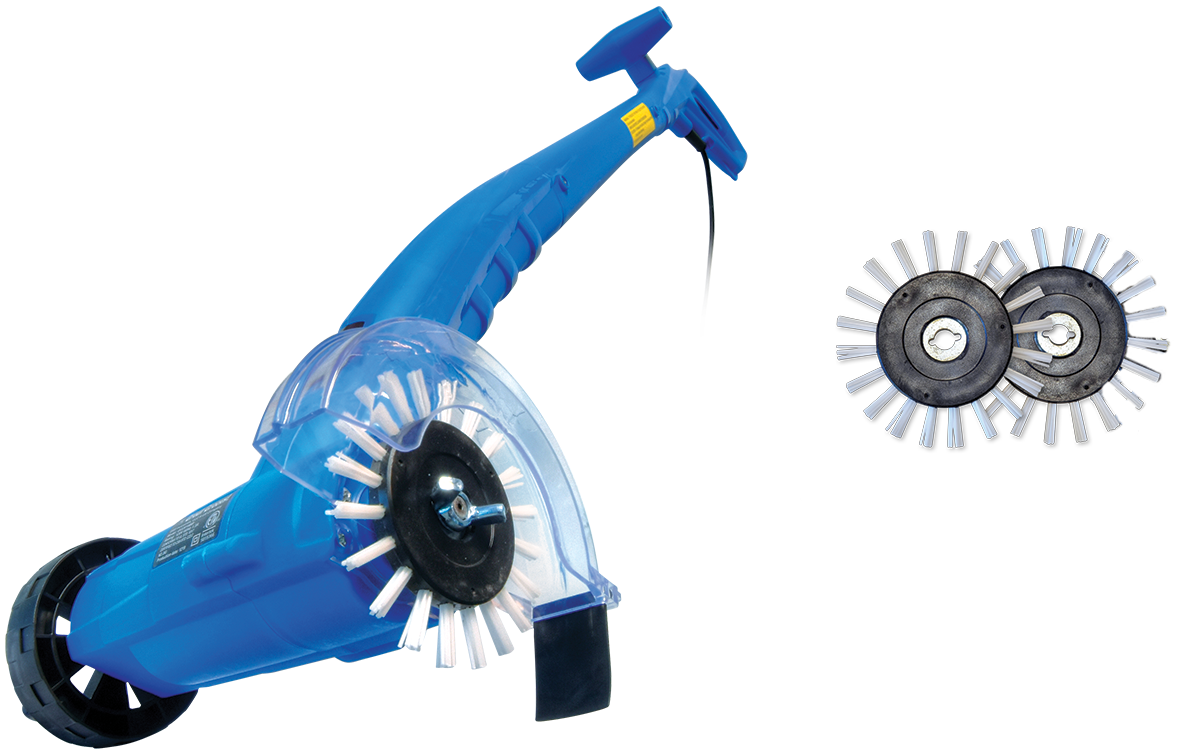 Unique vertical brush design cleans narrow or wide grout